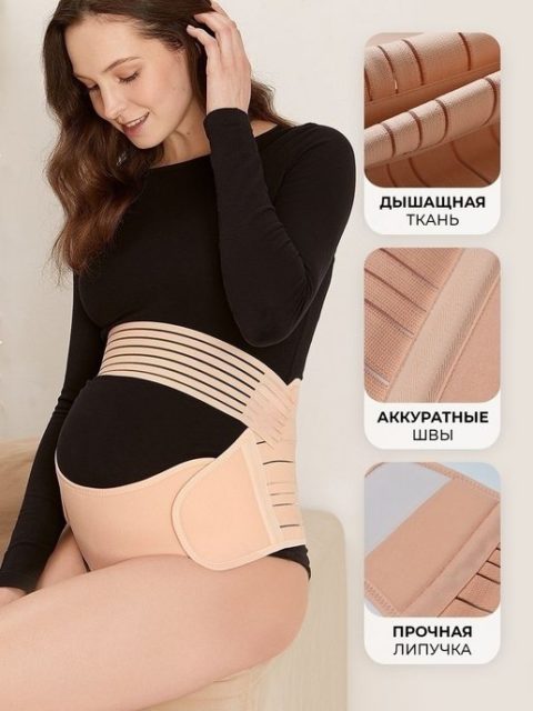 Бандаж для беременных 4 в 1 является универсальным. За счёт своей конструкции из липучек и эластичных лент его можно носить в 2 вариациях. Во время беременности корсет располагают так, чтобы узкая полоса была под животом, а широкая часть – на пояснице. После родов делают наоборот: широкая часть должна быть на животе, для восстановления мышц передней брюшной стенки от растяжек, а узкая идти по пояснице. Во время беременности дородовой бандаж снимает нагрузку со спины, поддерживая область поясницы и живота снизу. Такой бандаж подходит на весь период беременности, а после родов и кесарева сечения надо обязательно использовать как послеоперационный корсет для реабилитации. Тонкая ткань бандажа позволяет носить его под одеждой как корректирующее белье. За счет современных технологий он очень лёгкий, дышащий и эластичный. Перед применением проконсультируйтесь с врачом.