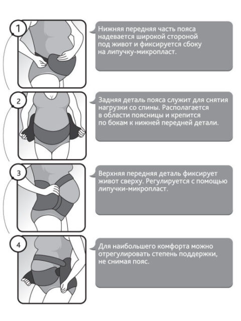 Бандаж дородовой (модель 3648) состоит из трех частей. Во время беременности двойная деталь бандажа с велюровой вкладкой и узким поясом надевается широкой стороной под живот и фиксируется сбоку на липучку-микропласт. Самая широкая часть бандажа с липучками по бокам располагается в области поясницы. Узкая короткая деталь фиксируется сверху, над животом. С помощью боковых липучек она позволяет надежно зафиксировать конструкцию, а также позволяет регулировать размер и посадку бандажа по форме животика. После родов детали бандажа необходимо поменять местами: часть с велюровой вкладкой, поддерживающая живот во время беременности, фиксируется сзади, а широкая деталь, которая до родов была на пояснице, с помощью боковых липучек закрепляется спереди. Узкая короткая полоска располагается на уровне талии для возможности скорректировать размер. Перед выбором проконсультируйтесь с врачом акушером-гинекологом.