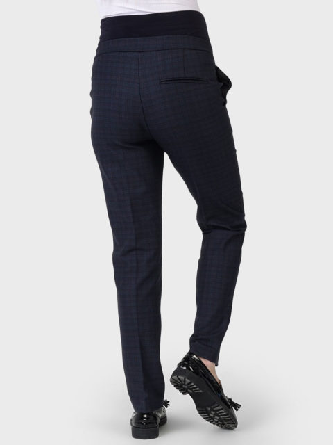 Классические брюки для беременных выполнены из костюмной ткани. Пояс: трикотажная вставка на живот, регулируемая резинкой с пуговкой сверху. Карманы: боковые, сзади имитация кармана.