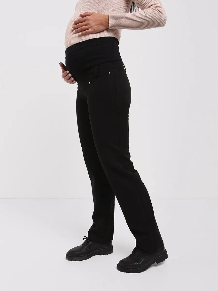 Брюки для беременных на флисе теплые прямые, Pazl 457 черный