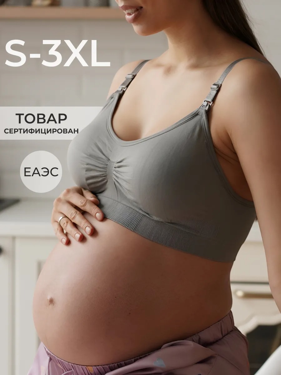 Бюстгальтер для беременных и кормящих бесшовный Ангелина, графит, без каркасов