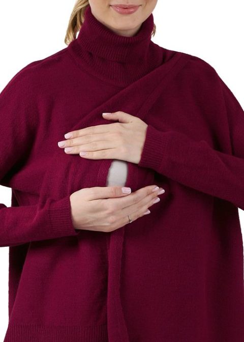 Свитер для будущих мам подойдет на весь срок ожидания малыша. Теплый свитер из вязаной ткани с 50% содержанием шерсти займет достойное место в любом гардеробе. Удобство кормления грудью: за запахом