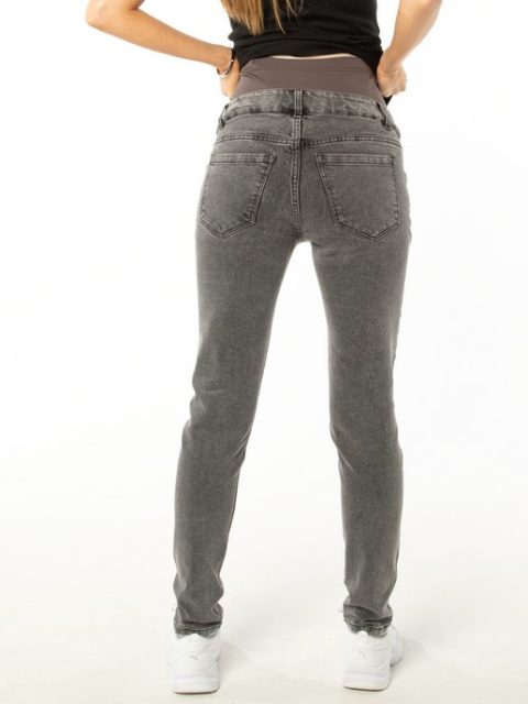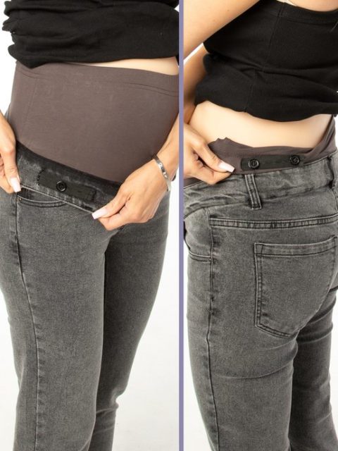Джинсы для беременных. Объем регулируется за счет перфорированной резинки, продетой в трикотажную вставку изделия, которая перестегивается на пуговицу. Детали модели: три кармана спереди, два накладных кармана сзади, шлевки для ремня сзади. Специальный крой с учетом анатомических особенностей беременных позволяет носить изделие от начала до конца беременности, а также после родов.