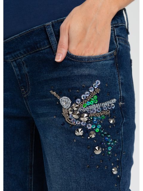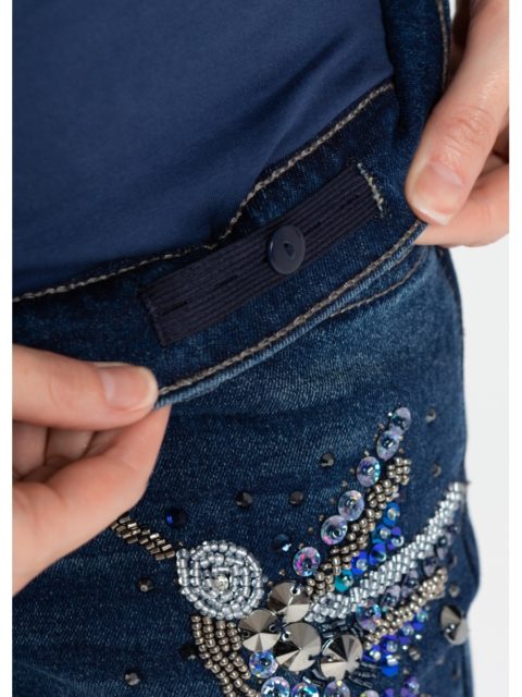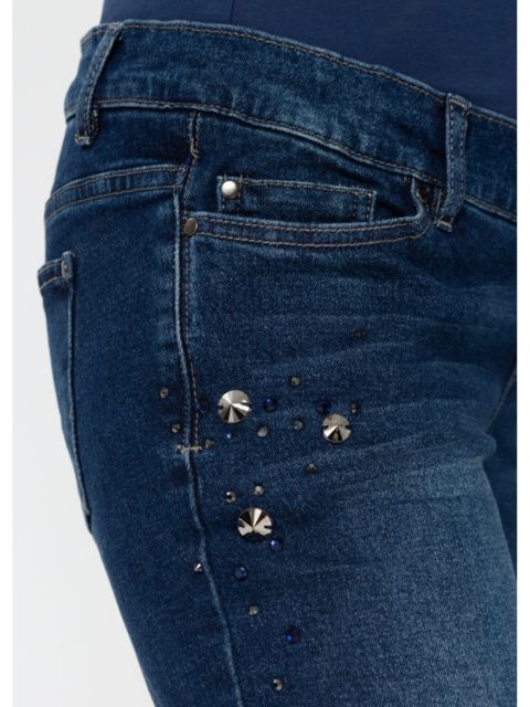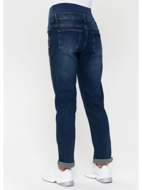 Джинсы для беременных Стайл-038 стразы, темный деним