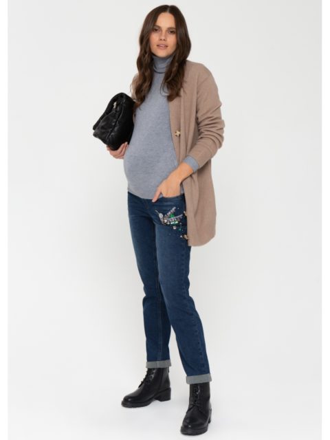 Модные джинсы для беременных из денима с трикотажной вставкой на живот с регулировкой. Карманы: 2 внутренних кармана сбоку, 2 накладных кармана сзади. Детали: вышивка “птица” из бисера и пайеток. Удобные практичные джинсы для беременных станут незаменимой частью вашего гардероба.