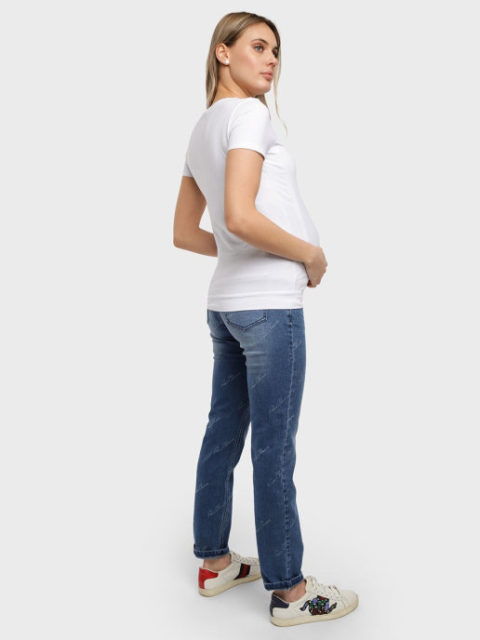 Модные джинсы I love mum для беременных из денима, спереди – эластичная вставка из трикотажа.