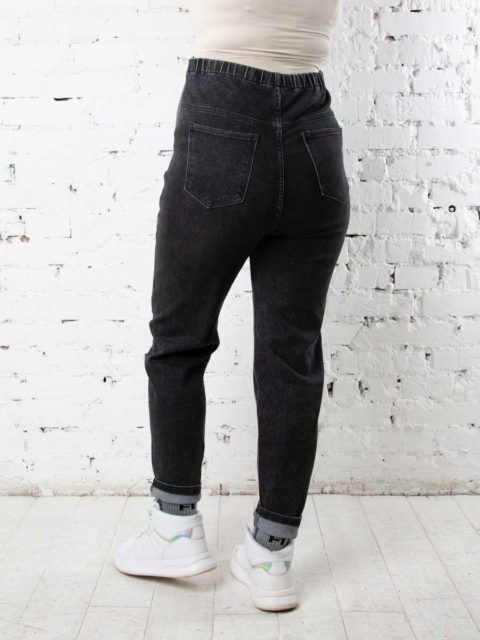 Джинсы для беременных. Сшиты из джинсы стрейч. Джинсы с высоким трикотажным передним бандажом. По верху бандажа есть резинка для регулировки по объему. Мягкая темно_синяя вареная джинса с небольшими потертостями. Сзади два накладных кармана, спереди два действующих кармашка. Модель удобная и практичная, можно носить на любом сроке беременности.