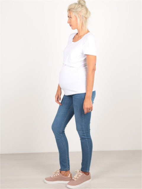 Джинсы для будущих мам, которые хотят выглядеть еще стройнее и обворожительнее. Они изготовлены из мягкого и эластичного денима, обладающего подтягивающим эффектом.