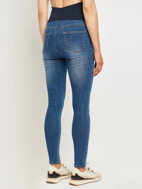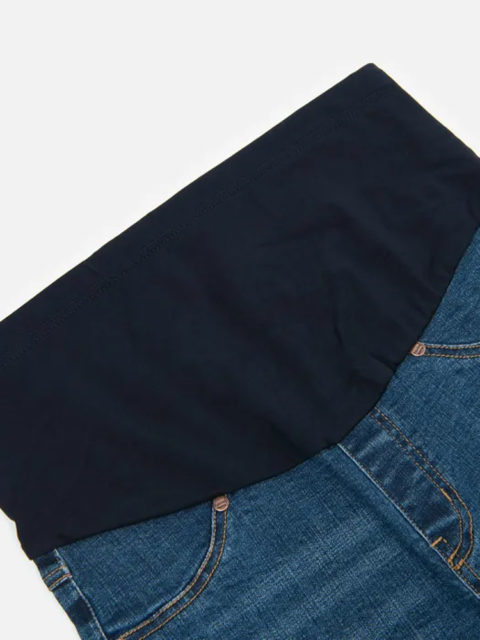 Джинсы для беременных. Высокая посадка на живот. Объем регулируется за счет перфорированной резинки, продетой в трикотажную вставку изделия, которая перестегивается на пуговицу.