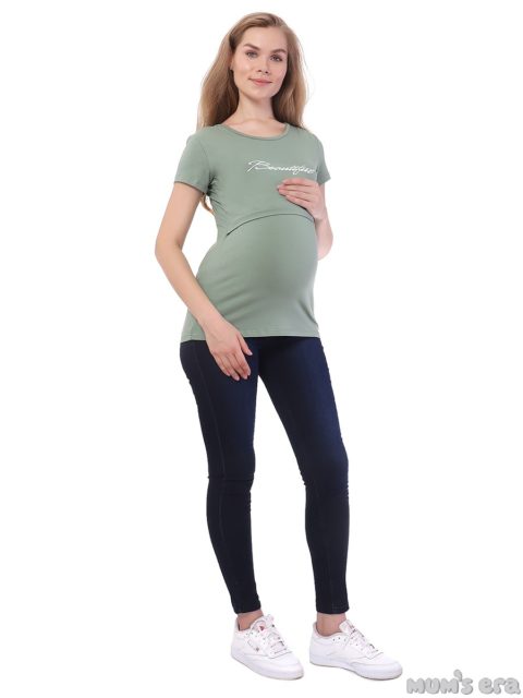 Базовая футболка для беременных с секретом для кормления Beautiful, олива