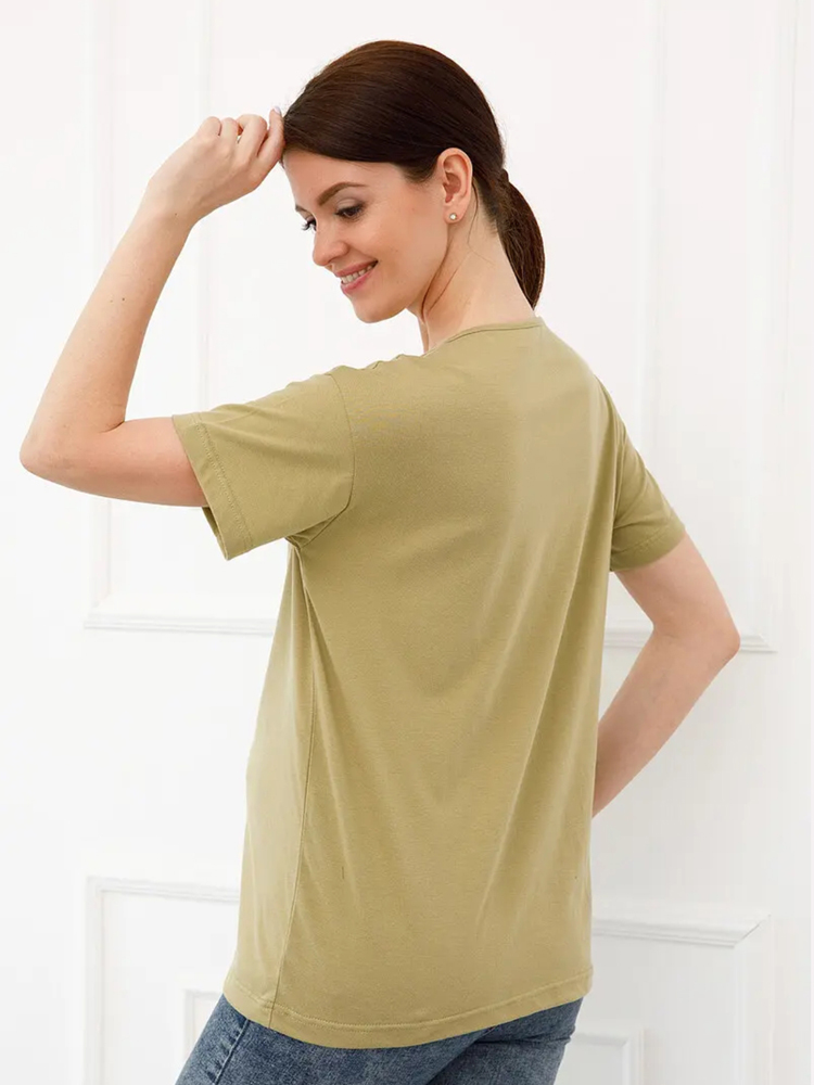 Подойдет на весь период беременности. Футболка для беременных и кормящих выполнена из качественного эластичного хлопка. Рукав широкий. Крой прямой. Вырез горловины округлый.