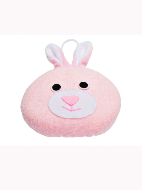 Губка для купания новорожденных, мягкая с хлопковым покрытием, Зайка, розовый