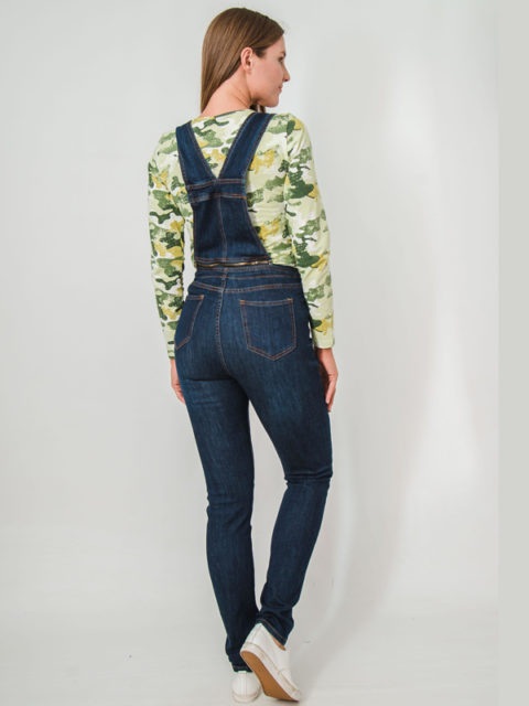 Джинсовый комбинезон на бретелях со съемным лифом. Внутренний бандаж позволяет носить комбинезон как джинсы при отстегнутом верхе. Накладные карманы на лифе, регулировки по ширине в боковых швах. Длина бретелей регулируется.