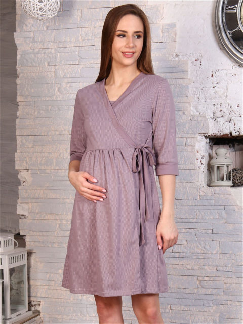 Комплект для роддома халат и сорочка для беременных и кормящих Кофе/горошки