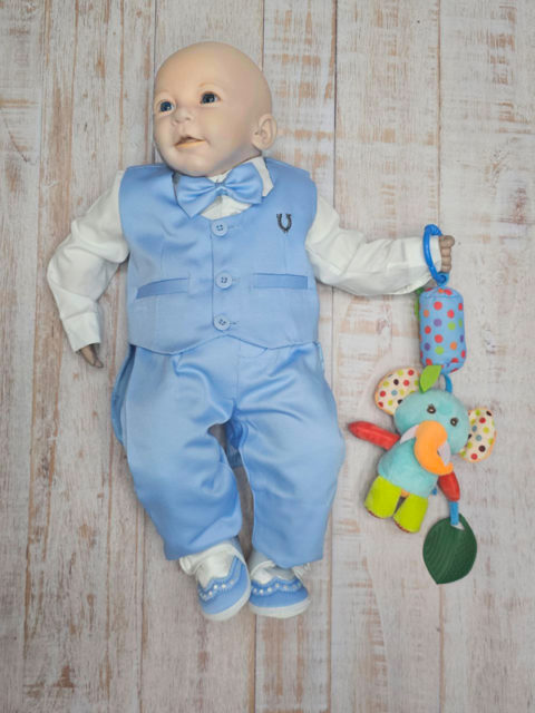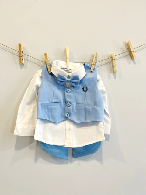 Набор для мальчика на выписку/крестильный/праздничный из 5-ти предметов: рубашка, жилетка, бабочка, брюки пинетки.