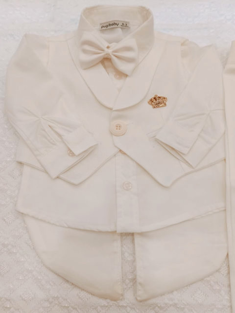 Набор для мальчика на выписку/крестильный/праздничный из 5-ти предметов: рубашка, жилетка, бабочка, брюки пинетки.