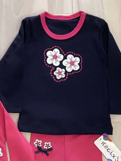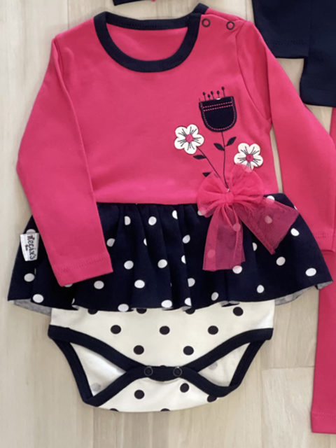 Комплект одежды для девочки 4 предмета, Flowers pink blue, боди+шапочка+штанишки+лонгслив