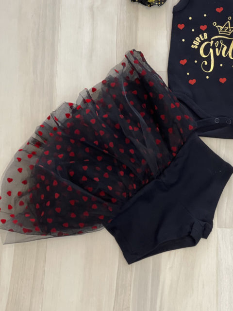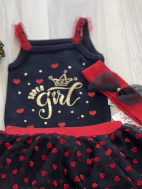 Комплект одежды для девочки, боди, юбка, полоска на голову, Hearts Black/red