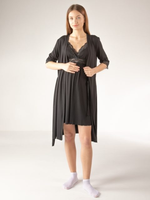 Комплект в роддом для беременных и кормящих, Наоми, черный (вискоза)