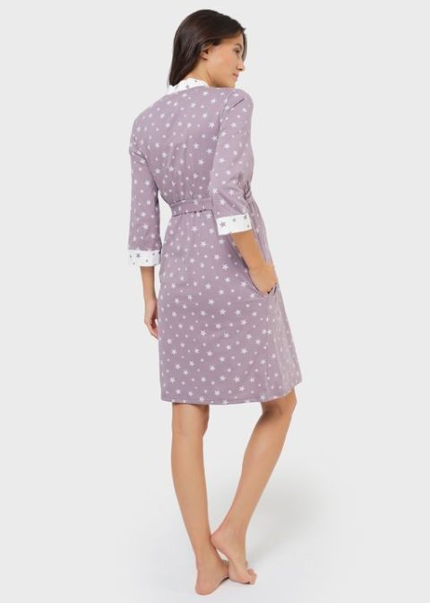 Комплект для роддома халат и сорочка для беременных кормящих Айрис кофейные звезды
