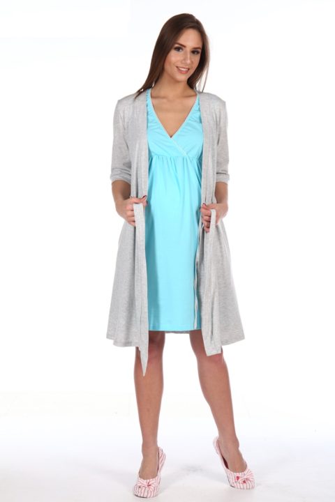 КОМПЛЕКТ ДЛЯ БЕРЕМЕННЫХ И КОРМЯЩИХ СЕРЫЙ МЕЛАНЖ/ГОЛУБОЙ
