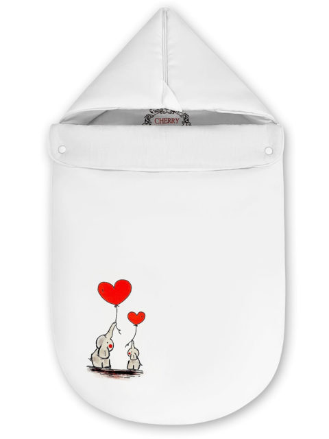 Летний конверт для новорожденных на выписку “Слоники” белый с бантом, (от +15 до +25)
