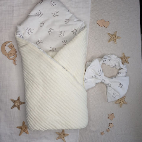 Комплект на выписку из вязанного полотна, внутри кулирный трикотаж, 100% хлопок “корона”.