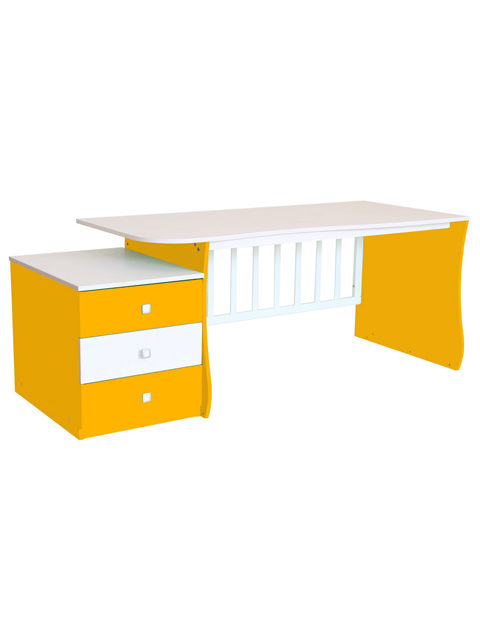 Кровать детская Фея 5 в 1 желтая с белым для детей с рождения.