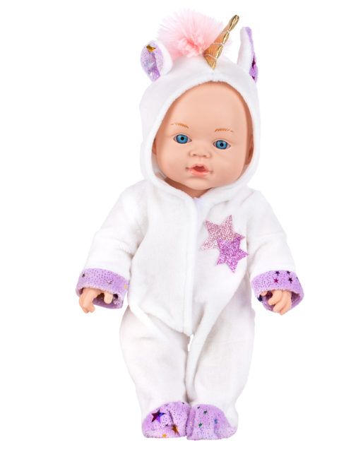 Общая информация об изделии: Милейший Пупс в комбинезоне Единорога. Без аксессуаров. Высота пупса – 30 см. Упаковка – картонный лоток. Материал, из которого изготовлена продукция по данным производителя: Тело – ПВХ-пластизоль, одежда – текстильные синтетические материалы, аксессуар – пластик Материал, из которого изготовлена индивидуальная упаковка изделия: Коробка (картон плотностью 250 г/м) Комплектность изделия с указанием количества: Пупс – 1 шт.