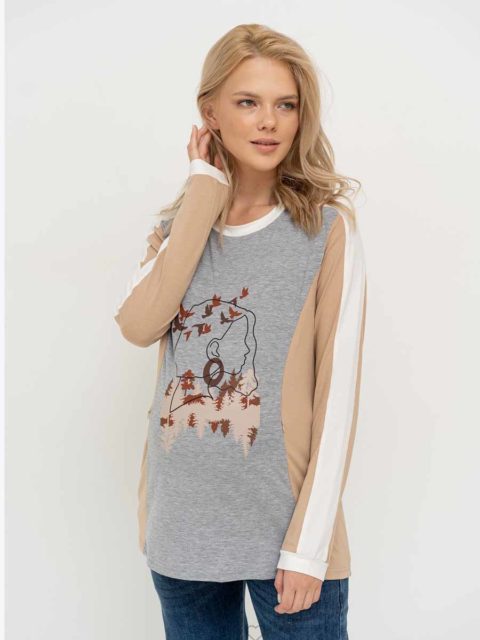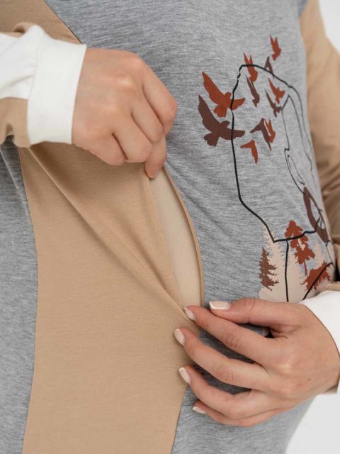 Лонгслив для беременных и кормящих Айрис, серый/кофейный