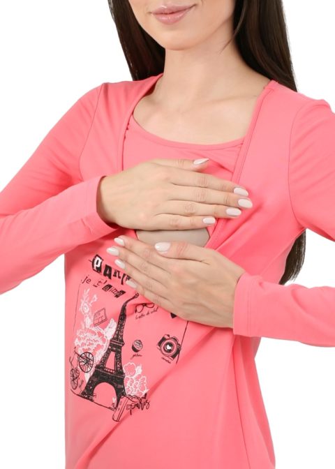 ЛОНГСЛИВ ГАБИЯ ДЛЯ БЕРЕМЕННЫХ И КОРМЯЩИХ КОРАЛЛОВЫЙ Состав: 95% Хлопок / 5% Эластан