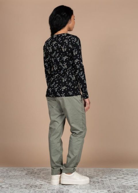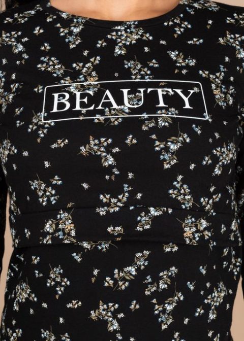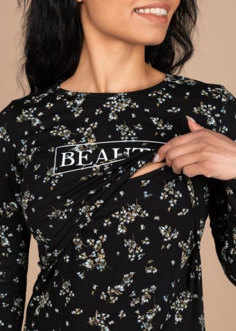 Футболка для беременных и кормящих с длинным рукавом Лиора, черный/цветы