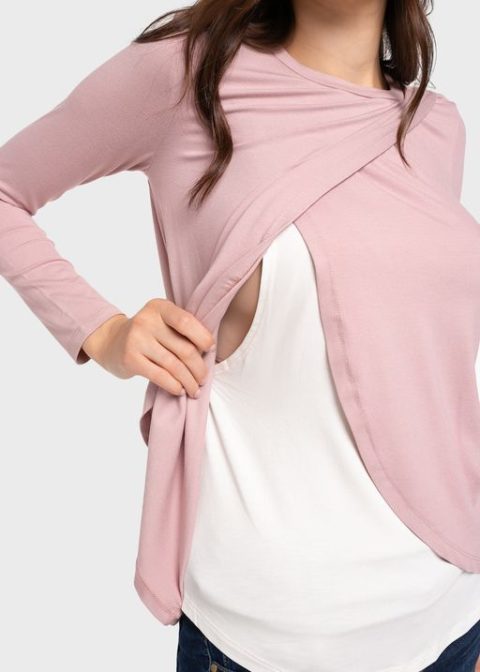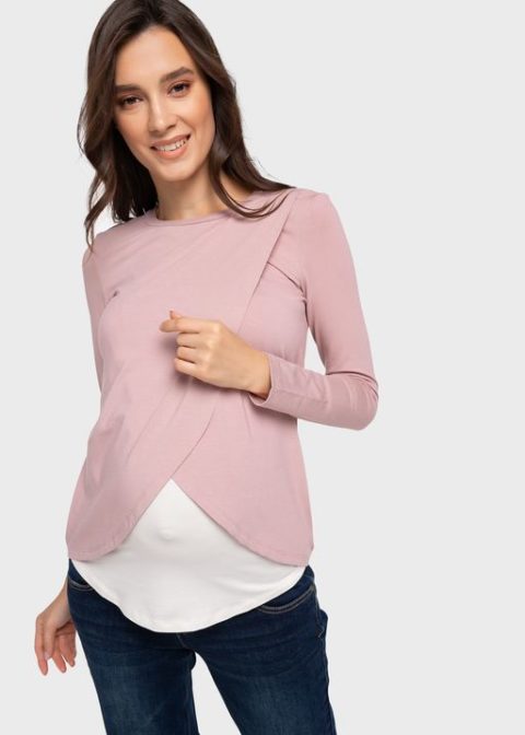 Футболка для беременных и кормящих с длинным рукавом Ольга пудровый
