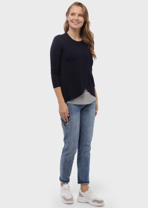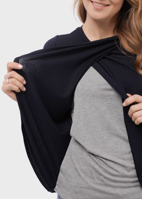 Футболка для беременных и кормящих с длинным рукавом Ольга темно-синий