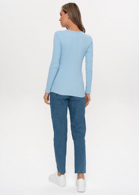 Футболка для беременных и кормящих с длинным рукавом светло-голубой