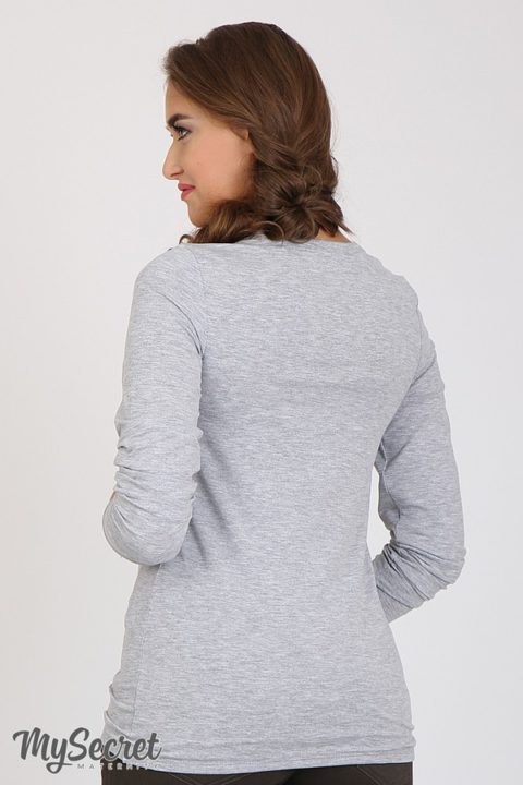 Облегающий лонгслив для беременных из хлопкового трикотажа. На груди озорной принт “Baby со стрелочкой”. Цвет: серый меланж.
