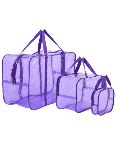 Набор прозрачных сумок в роддом 3 шт. большая/средняя/малая. Сумка в роддом. Полупрозрачный, фиолетовый