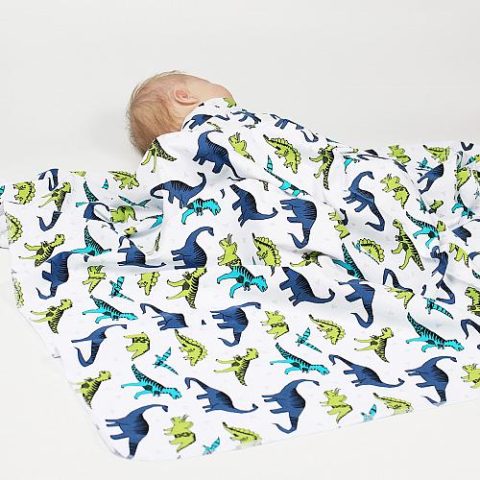Пеленка трикотажная для новорожденных 103×86 см., Белый/динозавры