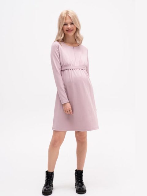 Платье для беременных и кормящих мам А-силуэта с завышенной талией и съёмным поясом. Выполнено из плотного, эластичного, мягкого плательного трикотажа джерси. Секрет для кормления-вертикальная потайная молния по центру лифа.