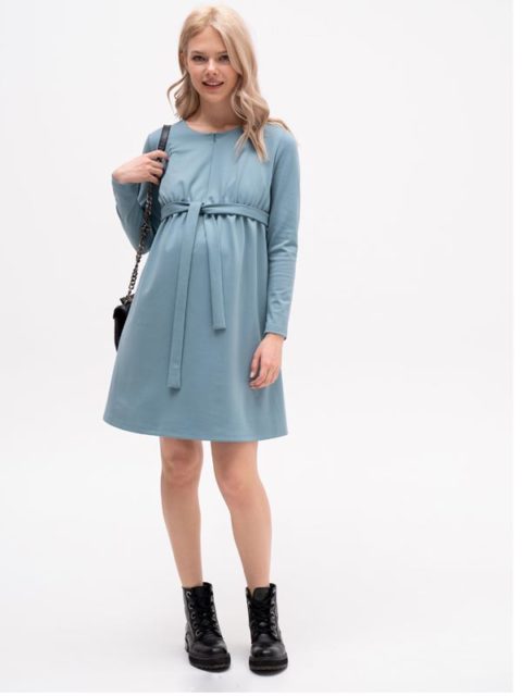 Платье для беременных и кормящих мам А-силуэта с завышенной талией и съёмным поясом. Выполнено из плотного, эластичного, мягкого плательного трикотажа джерси. Секрет для кормления-вертикальная потайная молния по центру лифа.