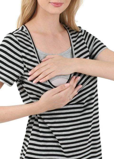 Платье “Вёрджи” для беременных и кормящих серый меланж черный. Состав: 95% Вискоза / 5% Эластан