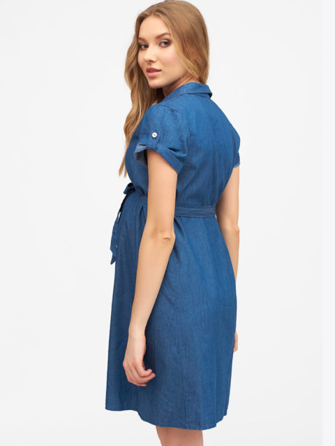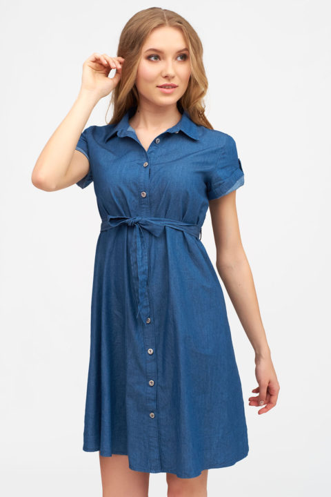 Платье-рубашка из тенсела, застёжка на пуговицах, рубашечный воротник, длина до колена, короткий рукав с возможностью укорачивания с помощью хлястика.