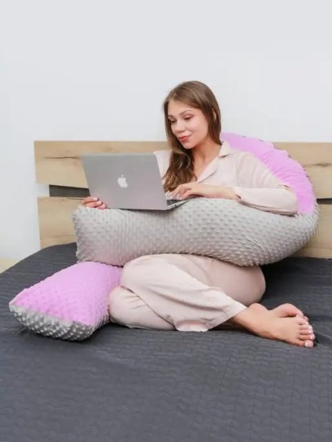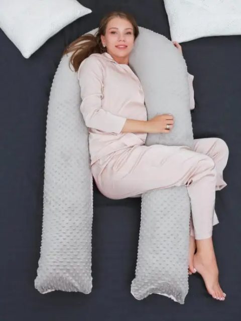 Данное приспособление представляет собой подушку во весь рост с помощью, которой можно принять любую удобную позу во время сна. Подушка сделана из материалов, не вызывающих аллергию и способна выдержать ежедневное использование на протяжении всего срока беременности.