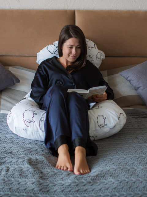 Данное приспособление представляет собой подушку во весь рост с помощью, которой можно принять любую удобную позу во время сна. Подушка сделана из материалов, не вызывающих аллергию и способна выдержать ежедневное использование на протяжении всего срока беременности.