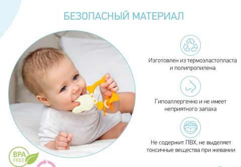 На начальном этапе, когда у малыша раздражены десны, он может чесать их о мягкую рельефную голову зайчика. На завершающем этапе малыш сможет грызть более твердое тело и твердые морковки для лучшего эффекта. Пригодится даже при прорезывания жевательных зубов, потому что ушки зайца по форме похожи на капу, что позволит малышу снять зуд с самых дальних десен. Прорезыватель сделан из безопасных гипоаллергенных материалов (термоэластопласта и полипропилена), так что ребенок может грызть его целыми днями.
