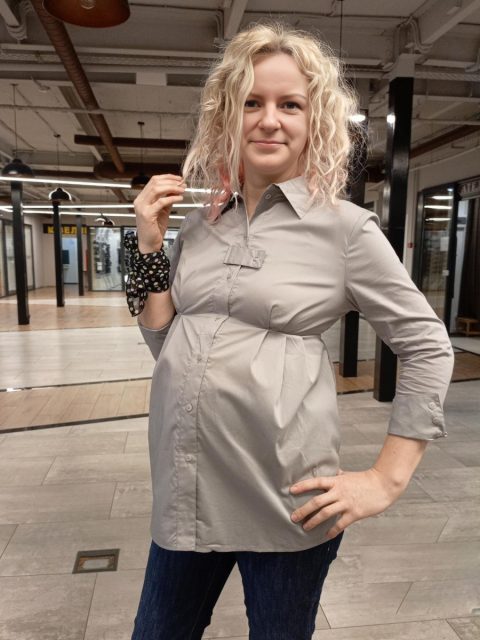 Базовая удлиненная рубашка ля беременных, на пуговицах. Подойдет на весь срок беременности. Можно носить и после родов как обычную рубашку.