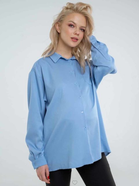 Рубашка для беременных свободного кроя в стиле оверсайз. Выполнена из плотной ткани с добавлением хлопка. Благодаря универсальному силуэту можно носить как во время, так и после беременности.