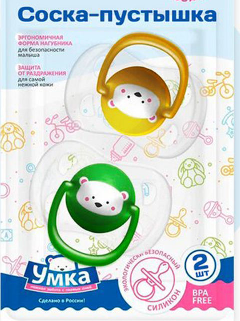 Соска пустышка экологически безопасна и не содержат бисфенол -А. Обладают эргономичной формой нагубника. Защищают от раздражения. Соска-пустышка силикон Умка с ярким дизайном станет другом Вашему малышу! Соска пустышка силиконовая предназначена для новорожденных. Изготовлена из безопасных материалов. Форма нагубника с дополнительными отверстиями предотвращает раздражение даже для самой чувствительной кожи. Соска изготовлена не из латекса, а из экологически безопасного силикона.
